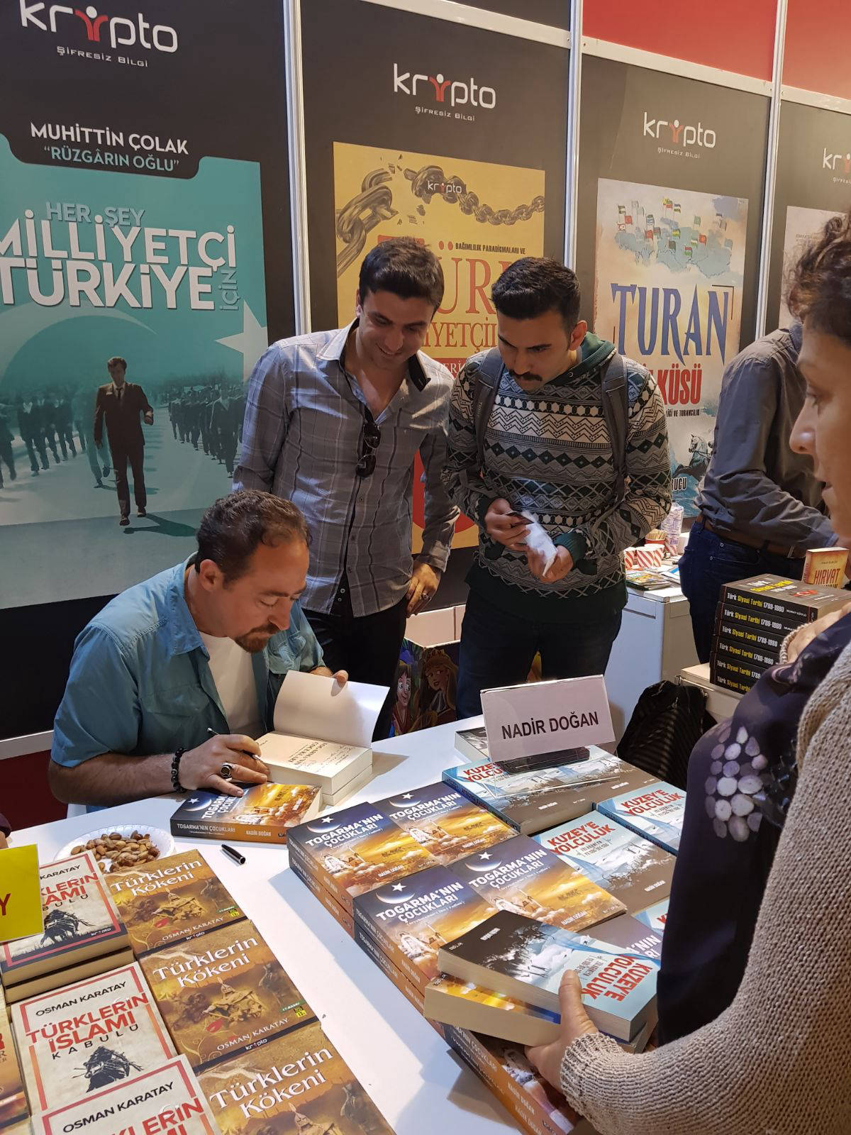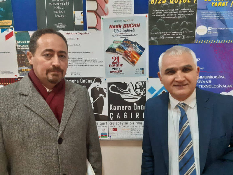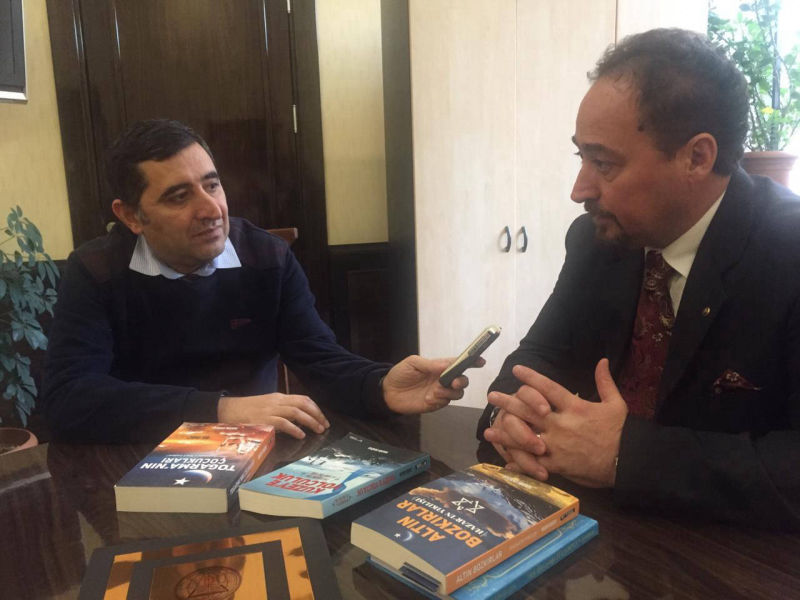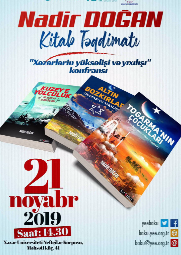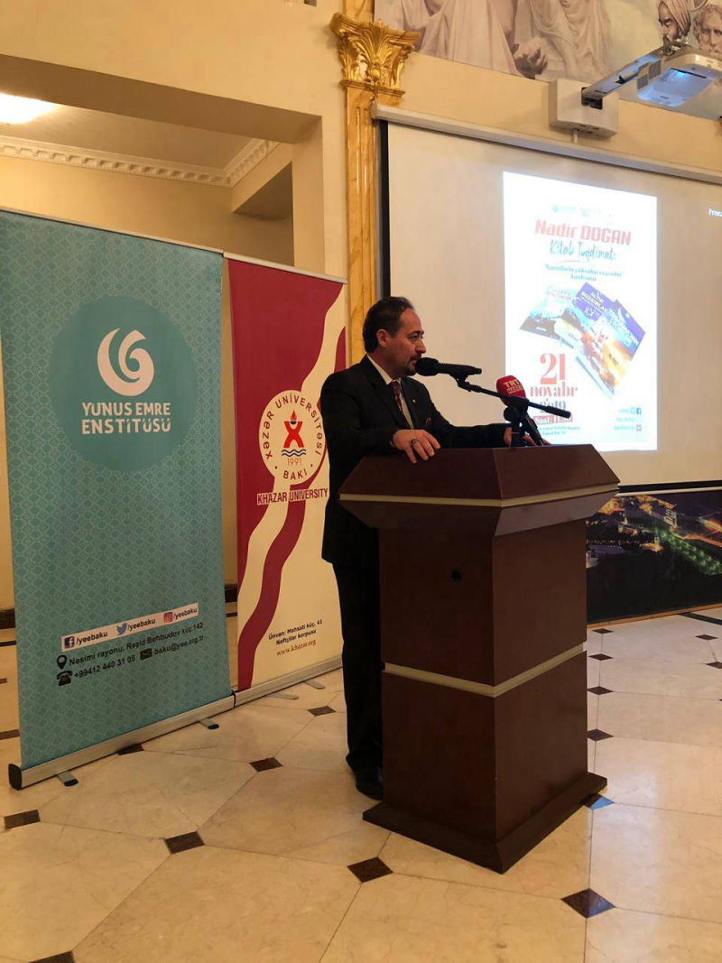 Türk Yazın hayatına Kuzey Üçlemesi adlı eserleri ile muhteşem bir giriş yapan TRT’den dönem arkadaşım, kıymetli dost Nadir Doğan ‘ın kitaplarının tamamı elime ulaştı.Büyük bir heyecanla soluğu hemen Yunus Emre Bakü Müdürümüz Doç.Dr.Cihan Özdemir ‘in yanında aldım.Azerbaycan Türkleri’nin bu kadim topraklardaki yolculuğu beni çok meraklandırıyor.Kitapları kendisine Telman Nusretoğlu hocamla birlikte teslim edip,eşsiz birikimi ile değerlendirmesini rica ettim.Amacım askerlik yıllarından beri tanıdığım 30 yıllık birikimini bu eserlere yansıtmış Nadir beyi, Azerbaycanlı okuyucularla buluşturmak.Ve edebi bir lezzet,sinematografik bir görsellik içindeki bu eserleri tanıtmak.Kendisi belgesel ve kitap çalışmalarını sürdürüyor.İnşallah önümüzdeki günlerde Nadir Doğan’ın Bakü programını bu sayfadan tekrar duyuracağım.Tebrikler kardeşim.Sizin gibi böyle ısrarla kutsal ve kadim tarihimizi aydınlatmaya hayatını adamış yazarlarımıza selam olsun.